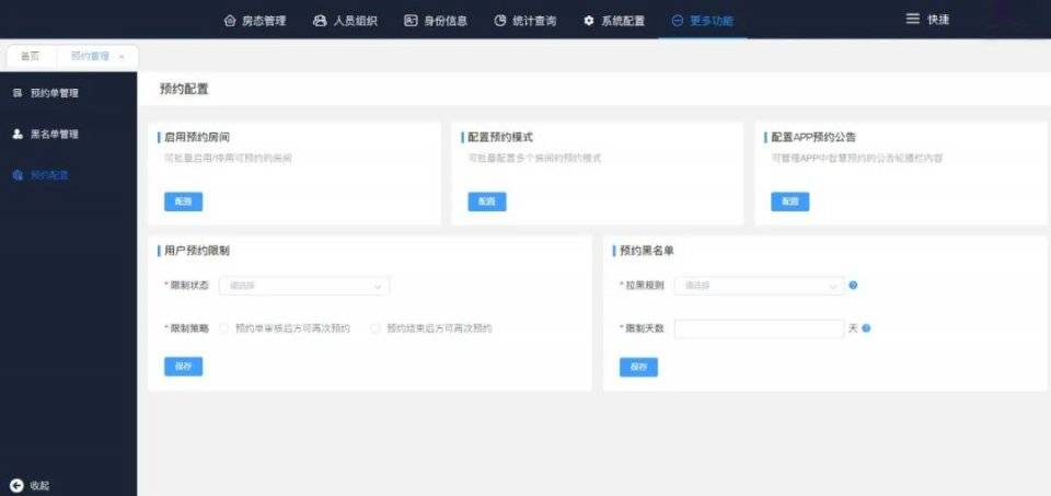 此外,預約應用還提供黑名單管理、預約公告、預約限制、移動審批以及各類批量操作功能,為管理者、預約者提供方便快捷的預約體驗。