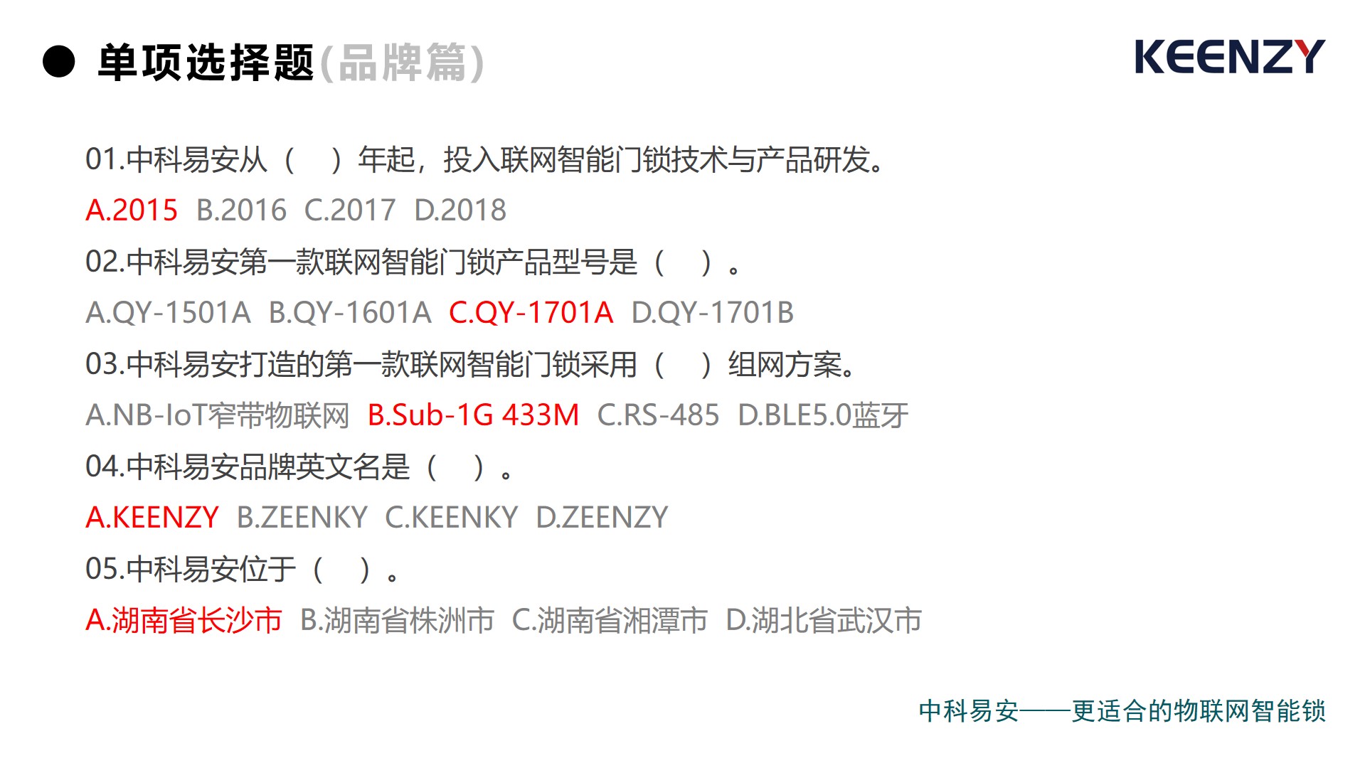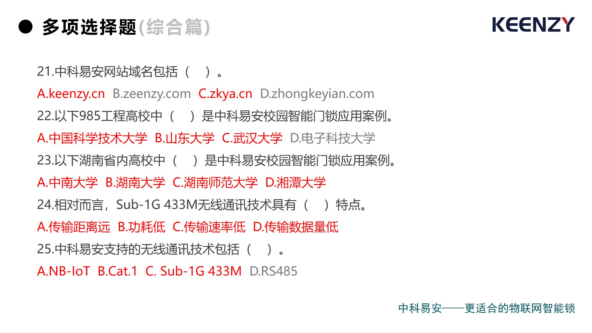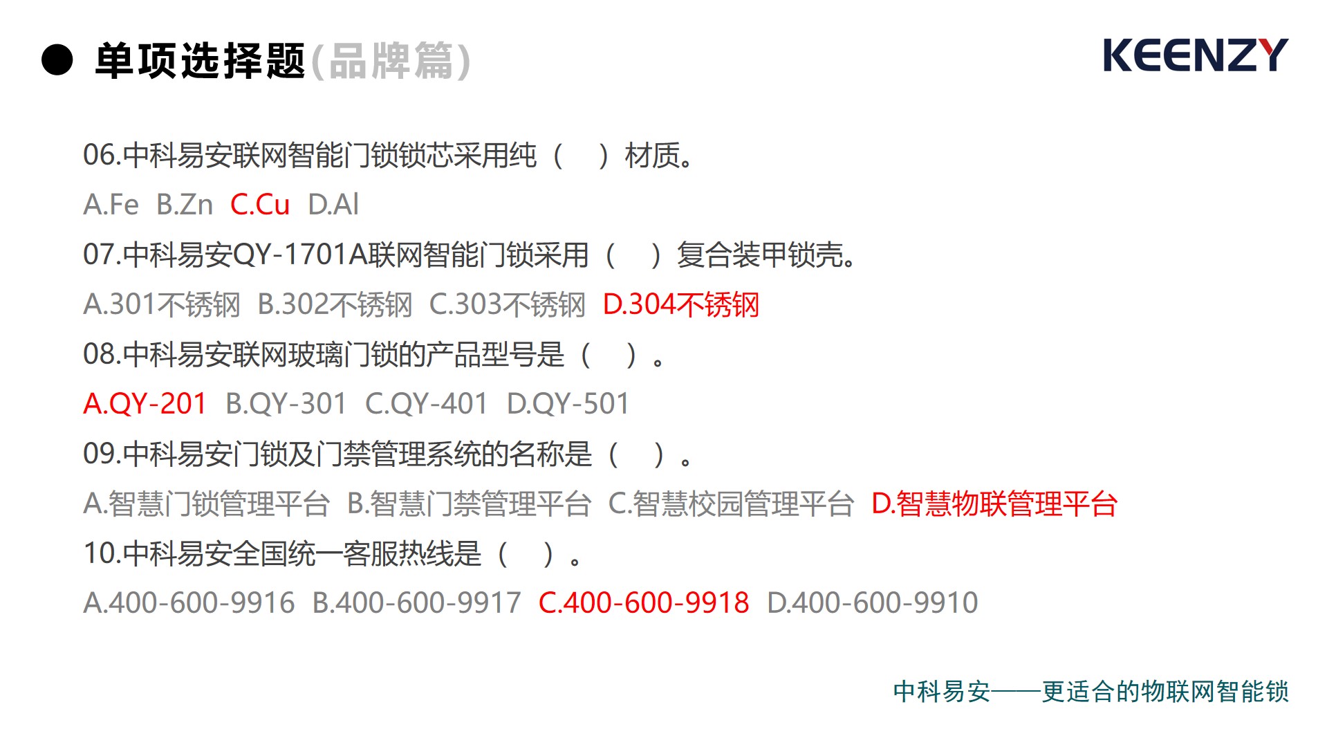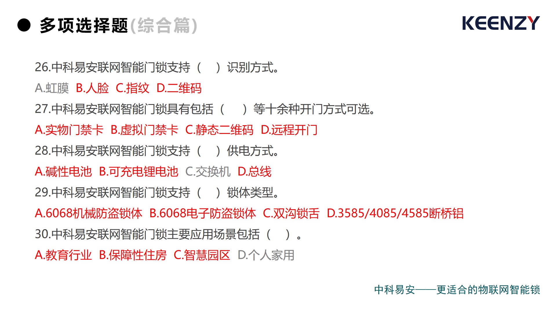 上周,中科易安發布了《聯網智能門鎖(學科 )》試卷,以中科易安聯網智能門鎖品牌、技術、綜合為視角,設置單項選擇題和多項選擇題兩大題型,累計30道題,現正式公布答案。